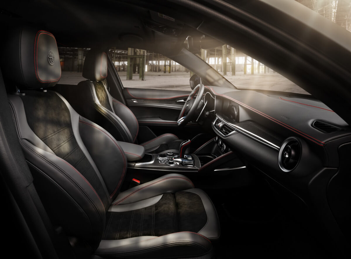 Other changes made to the Stelvio Veloce Ti include new bumpers, a body-colored body kit, and tinted glass on all sides. It’s also offered with optional 21-inch dark wheels, while the interior receives the Quadrifoglio treatment. With new aluminum paddle shifters and premium leather and Alcantara seats, it screams comfort and luxury.