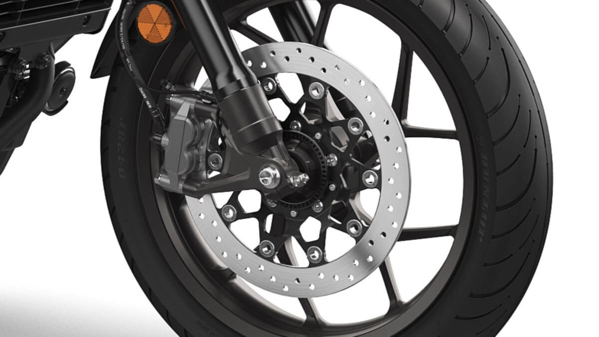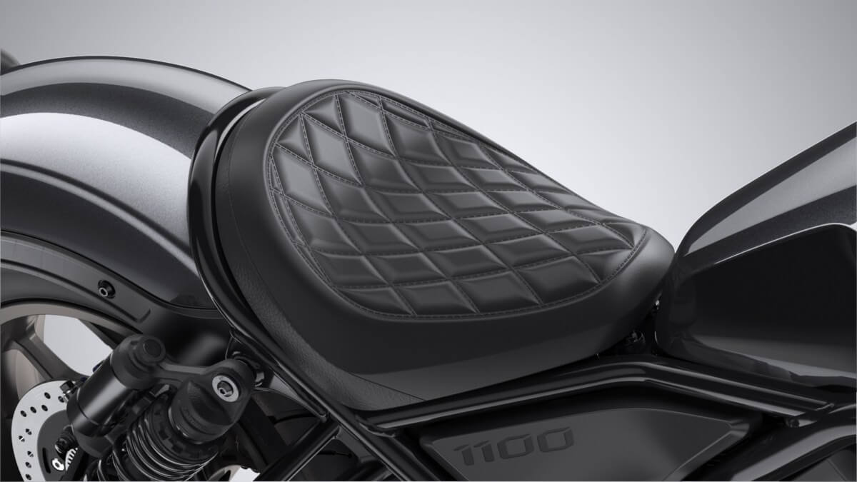 The cruiser’s chassis sits on a 43mm telescopic fork in the front and a pair of Showa shocks with piggyback reservoirs. It’s equipped with an 18-inch front wheel with a 330mm brake disc fitted with a four-piston caliper, while the 16-inch rear wheel features a single-piston caliper on a 256mm disc. The Rebel 1100 has ABS on both wheels and Honda’s Selectable Torque Control to prevent wheelies.