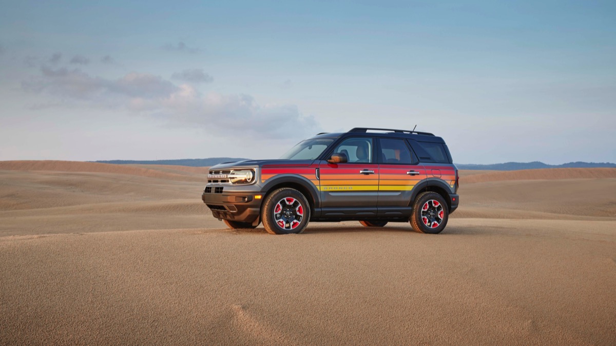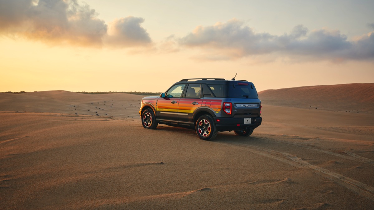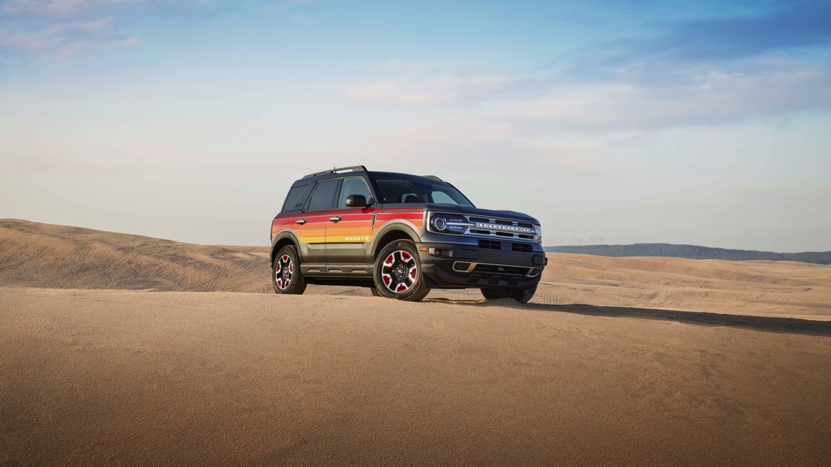 - Reimagined Ford Free Wheeling special edition with sunset-inspired design touches joins the 2024 Bronco Sport lineup, featuring four-color reflective exterior graphics that pay homage to the stylish Ford off-roaders from the 1970s