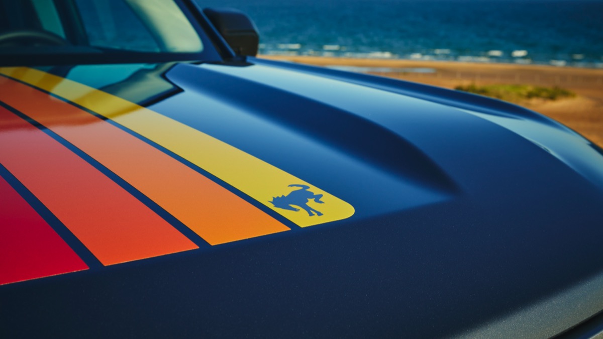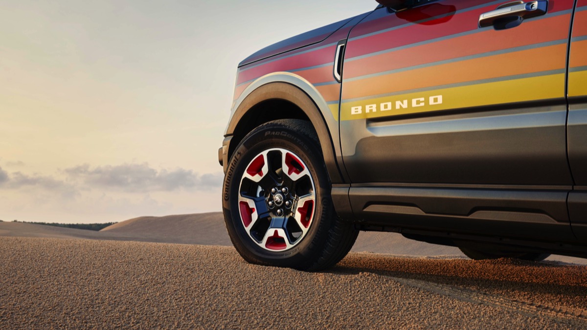 Like the originals, the 2024 Bronco Sport Free Wheeling special edition features reflective red, orange, yellow and silver graphics on the body sides, liftgate, and hood.