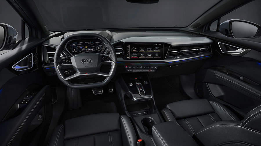 Inside the Q4 e-tron, Audi has fitted a standard 10.25-inch instrument panel and a 10.1-inch touchscreen infotainment display, with options to upgrade to Audi’s flagship 12.3-inch Virtual Cockpit system and a new 11.6-inch MMI plus touchscreen.