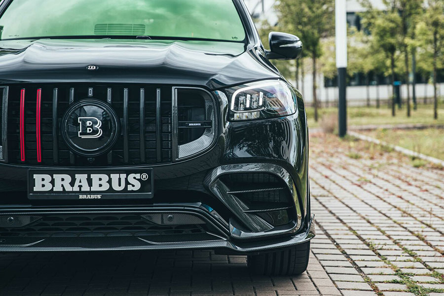 However, Brabus didn’t stop there. The Brabus 800 also features cosmetic revisions, like a blacked-out exterior and subtle carbon-fiber treatment for the new Brabus front spoiler, grille-mounted air inlets, and the wide air dams on either side of the front bumper. Meanwhile, carbon-fiber components at the back include a Brabus rear diffuser and inserts for the quad exhaust tips. Finally, the red signature stripes on the radiator grille and the illuminated Brabus badge in the middle serve to identify the GLS 63 as a Brabus vehicle.
