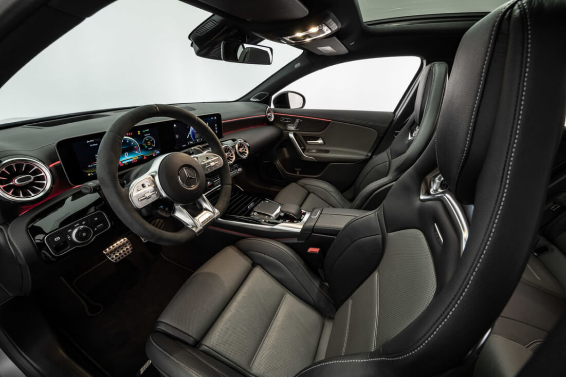 The A 45 S has the world’s most powerful mass-produced four-cylinder engine onboard, but Brabus managed to extract even more juice from it. Once fitted with the Brabus performance kit, the engine now produces 450 HP, a significant bump over the stock 421 HP. The torque output is also only improved, going from 369 lb-ft to 409 lb-ft. And even though the A 45 S was already quick, going from 0 to 60mph in only 3.9 seconds, Brabus claims the B45 to do the same in a mere 3.7 seconds.