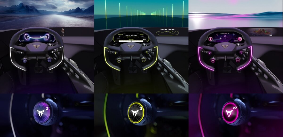 The CUPRA DarkRebel’s UX/UI journey offers three unique experiences: Exponential Square, Exponential Cube, and Exponential Infinite: