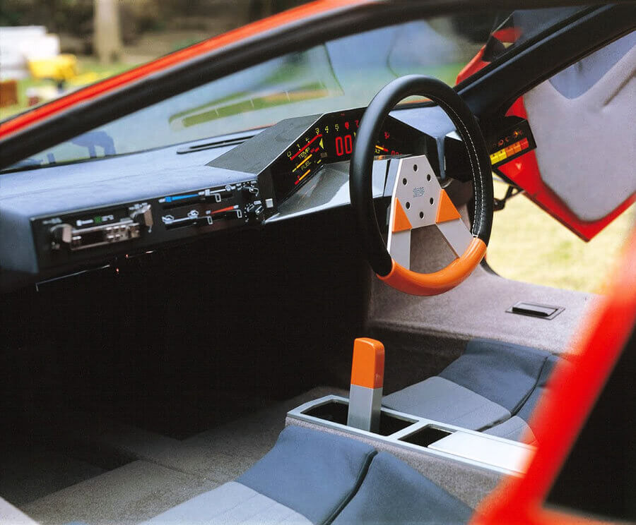 Hiding behind massive scissor-type doors, the interior was a bit more conservative. Sure, the steering wheel’s unique shape and central-mounted gauges are a nice touch, but that’s about it. Still, a steering wheel and some gauges were all you could have inside the car back then. Things like huge displays or computerized units that let you adjust the damping rate and engine characteristics existed only in movies. However, it did have one interesting feature when the car was on – a colorful digital dashboard.