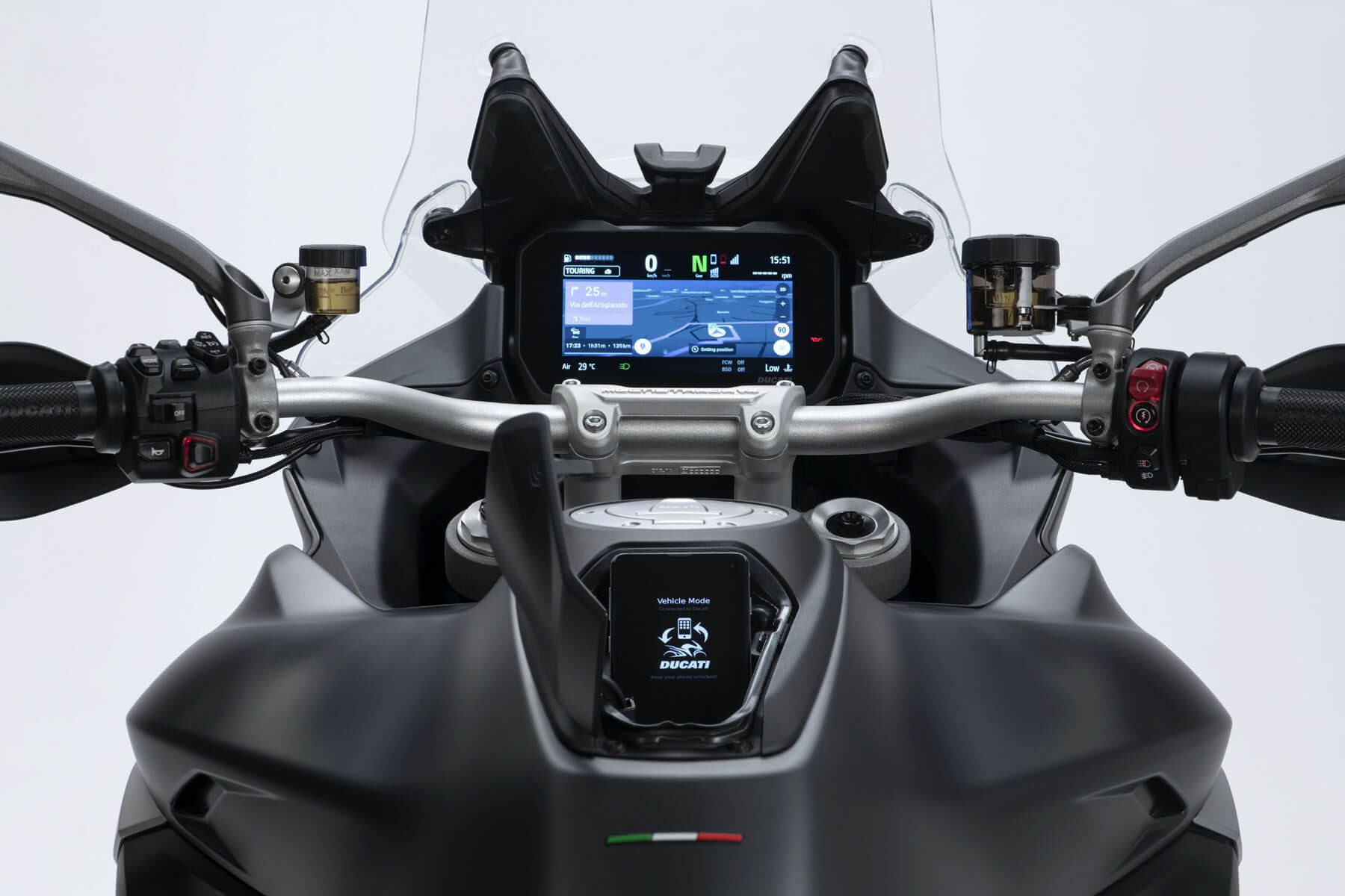 Worth mentioning, the Multistrada is the first bike to have adaptive cruise control developed by Bosch, using radars and sensors to adjust the speed to vehicles around.