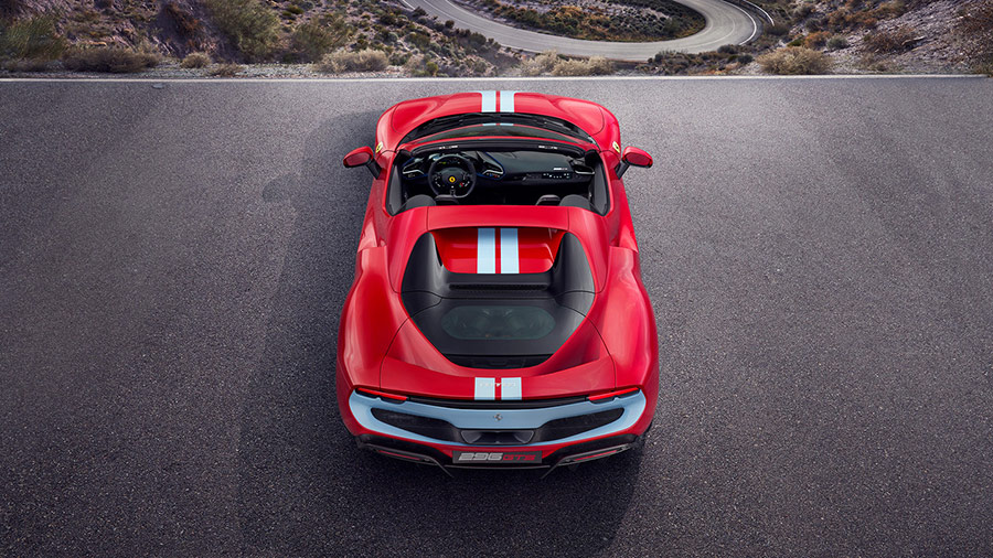 As a result, the 296 GTS can sprint from 0-62 mph (0-100 km/h) in 2.9 secs and go flat out at 205 mph (330 km/h). The supercar can also drive up to 84 mph (135 km/h) on electric power alone, with a maximum range of 15 miles (25 km).