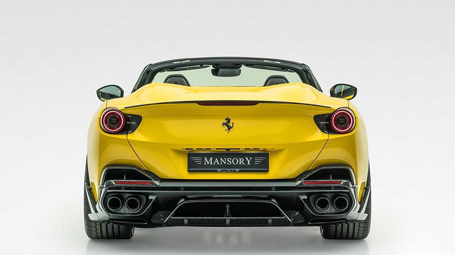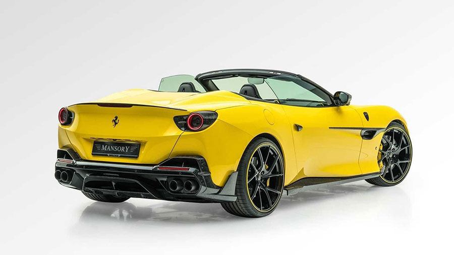 Carbon fiber bits can also be found at the rear, including the trunk lid lip spoiler, taillight covers, and rear splitter. Moreover, the aftermarket specialist has replaced the stock wheels with custom 21-inch and 22-inch alloys fore and aft, with contrast yellow linings to complement the exterior’s paint scheme. The exterior upgrades don’t stop there, as the Mansory Portofino M also features a unique carbon fiber retractable hardtop for added menace.