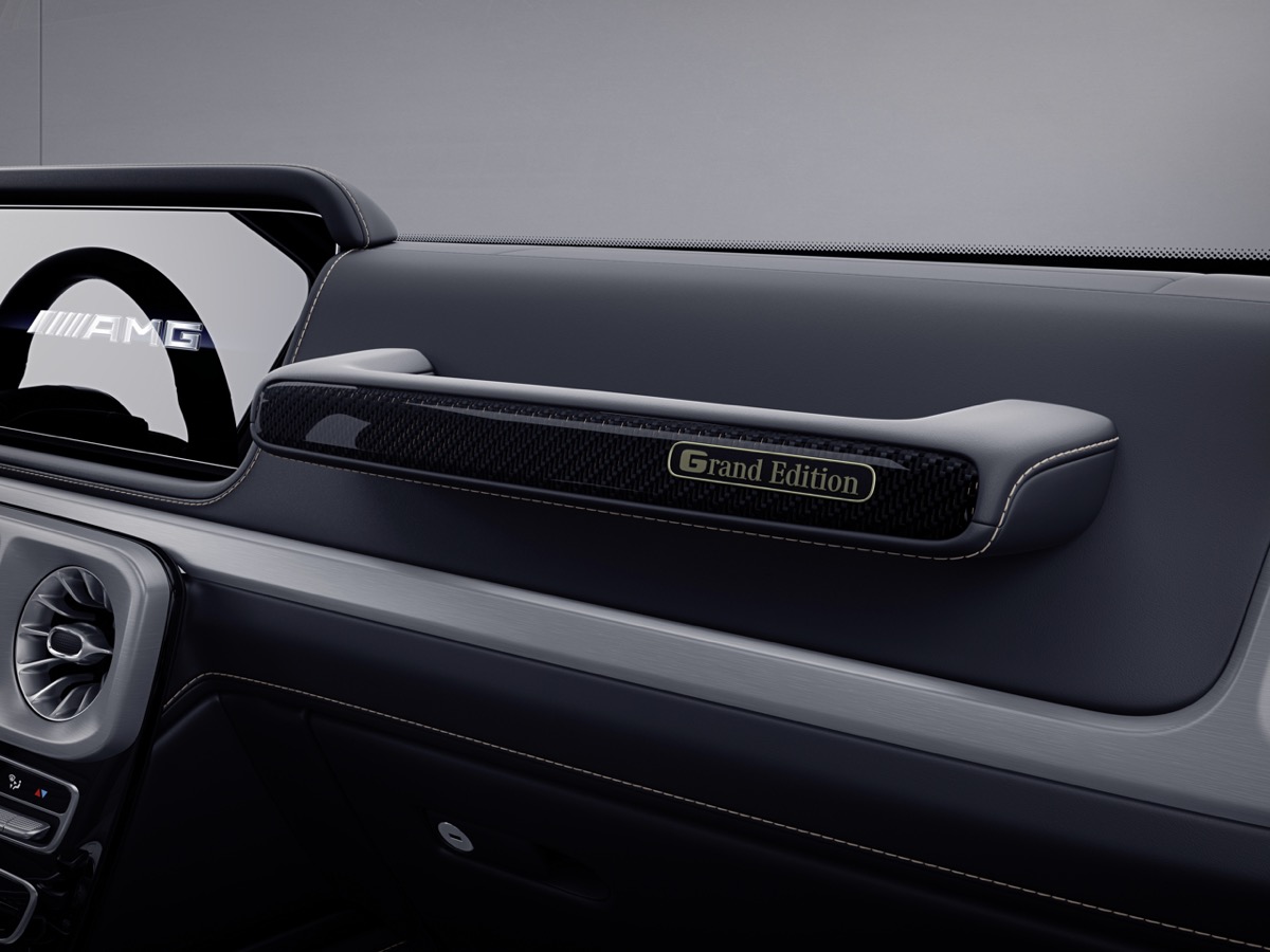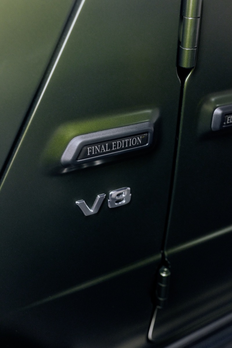 But what really differentiates a standard G500 from the Final Edition is a lot of special badging and some chromed bits. On the last-hurrah edition, the SUV’s exterior and interior are splattered with “Final Edition” and “Stronger Than Time” emblems, noticeable on the outer protective strip, the spare wheel cover insert, doorknobs, and interior sill plates. In addition, the famous mini logo projector also beams the “G” logo and special lettering onto the ground while stationary. Not to forget, the exclusive MANUFAKTUR full leather interior package adds soft Nappa leather all around, from the luggage compartment to the roof lining and the panels on the seat adjustment switches.