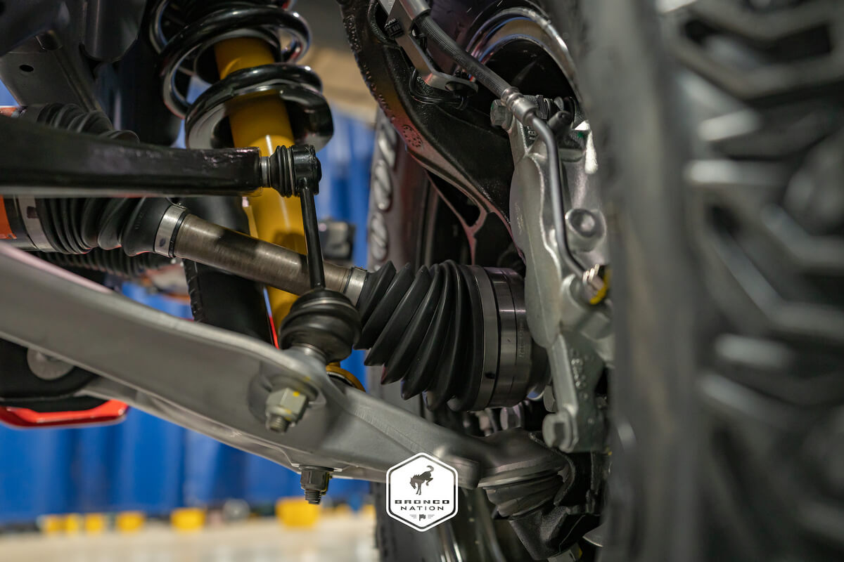 The front part of the Bronco features a disconnecting stabilizer bar. Many off-roaders have the same feature to increase articulation on uneven surfaces while increasing on-road stability. For example, the Jeep Wrangler Rubicon also has that feature. However, Ford ensures that the system on the Bronco will work even faster than its closest rival.
