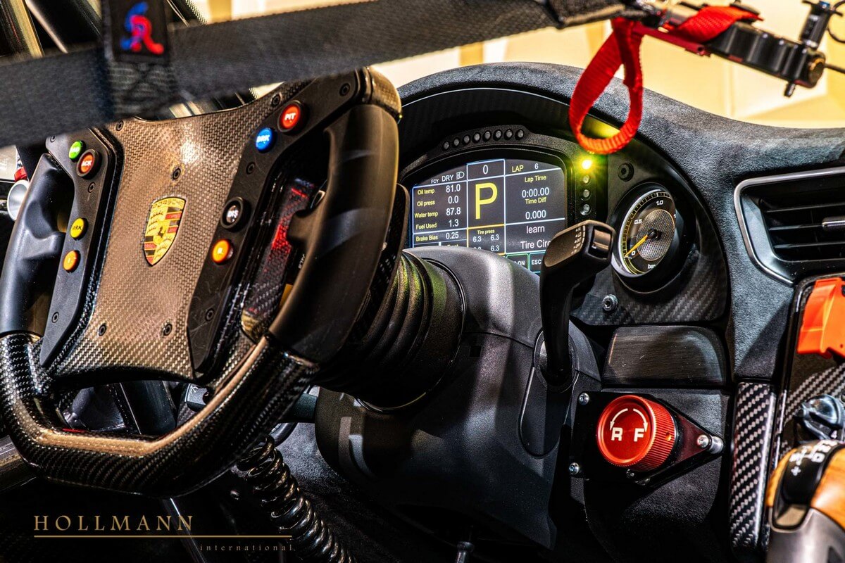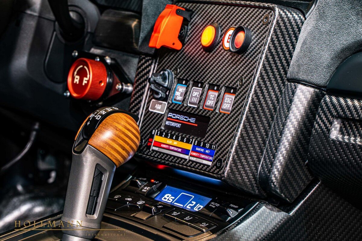 Indeed, the matte carbon-fiber cladding helps tremendously here. It looks threatening, to say the least. Not that it shouldn’t – this is a racing car after all. I must admit, though – Porsche did an excellent job with the orange aero caps. Matte black and orange always work well together. Kinda reminds you of the world-renowned Harley-Davidson palette.